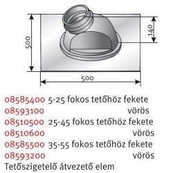 Ferde tetőn keresztül történő átvezetéshez - 500x500 mm-es ólom takarólemez - 25–45° hajlásszögű tetőszerkezethez - műanyag szigetelőelem fekete színben